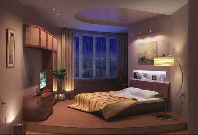 Если вам нужно дополнить освещение в вашей спальне, почему бы не купить торшер? Как правило, лампу торшера накрывает матовый плафон или абажур для того, что бы свет был приглушенным и не слепил в глаза. Однако в торшеры могут быть встроены так называемые прожекторы направленного света – они дают более яркий световой поток.