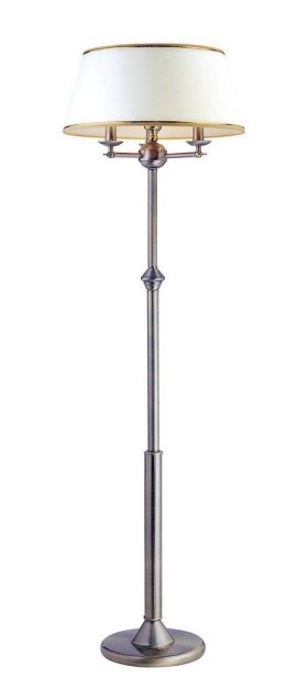 В классические и современные интерьеры хорошо вписываются классические торшеры с латунным основанием и конусным абажуром из текстиля.