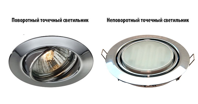 По конструкции точечные светильники делятся на поворотные и неповоротные.