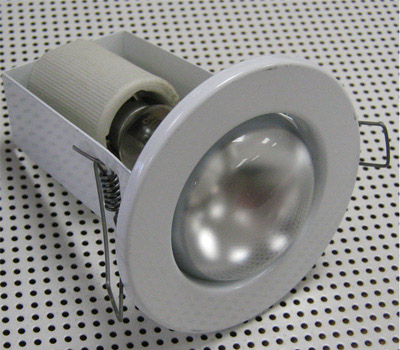 Галогенные точечные светильники отличаются малым энергопотреблением и высоким сроком службы, по сравнению с лампами накаливания. Возможно использование в них галогенных ламп как 220в так и 12в (через понижающий трансформатор). Трансформаторы делатся на электронные и индукционные. Электронные компактны, но довольно часто выходят из строя. Индукционные достаточно громоздки и тяжелые, но зато гораздо надежней. Устанавливают как небольшой трансформатор на каждую лампочку, так и мощный сразу на все. Но как правило поступают следующим образом — делят все светильники на несколько групп и для каждой группы устанавливают трансформатор средней мощности. К основным минусам галогеновых светильников можно отнести очень сильный нагрев, что ограничивает сферу применения точечных светильников с такими лапами и высокую чувствительность к жировым загрязнениям, которые при высоких температурах быстро сгорают и образуют зоны повышенной температуры, что часто приводит к разрушению галогеновой лампы. Поэтому установку необходимо производить в перчатках или использовать тряпочку, часто идущую в комплекте с точечными светильниками.