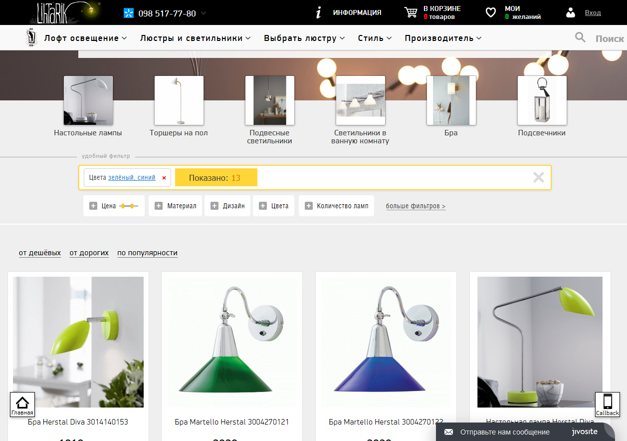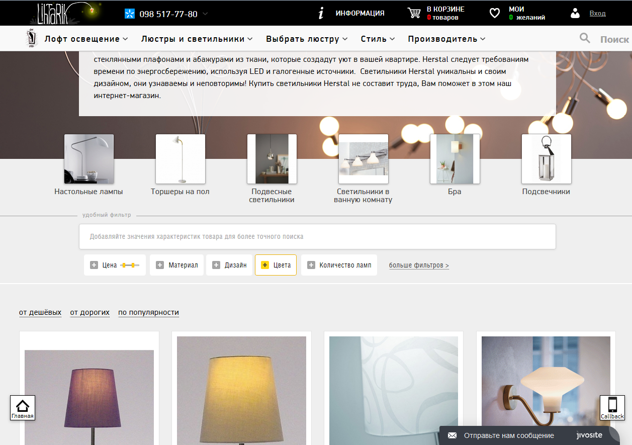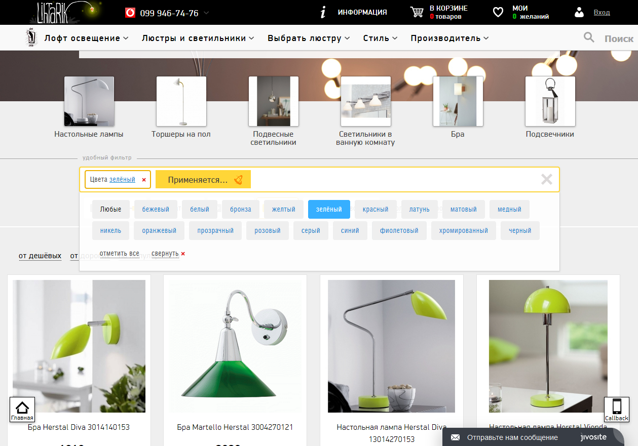 Чтобы каждый наш посетитель смог найти светильник себе по душе, мы сделали удобный фильтр товаров: