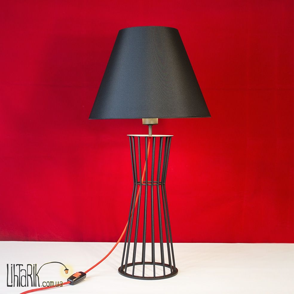 Этот настольный светильник с оригинальным абажуром, конусообразной формы впишется в любую дизайнерскую среду. Модель представлена в красных, черных тонах. Светильник изготовлен из металла, ткани высокого качества