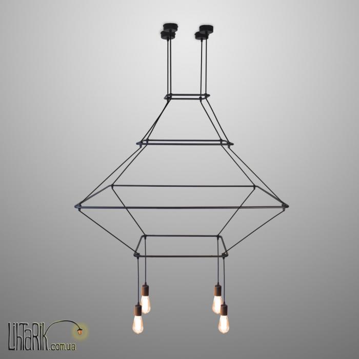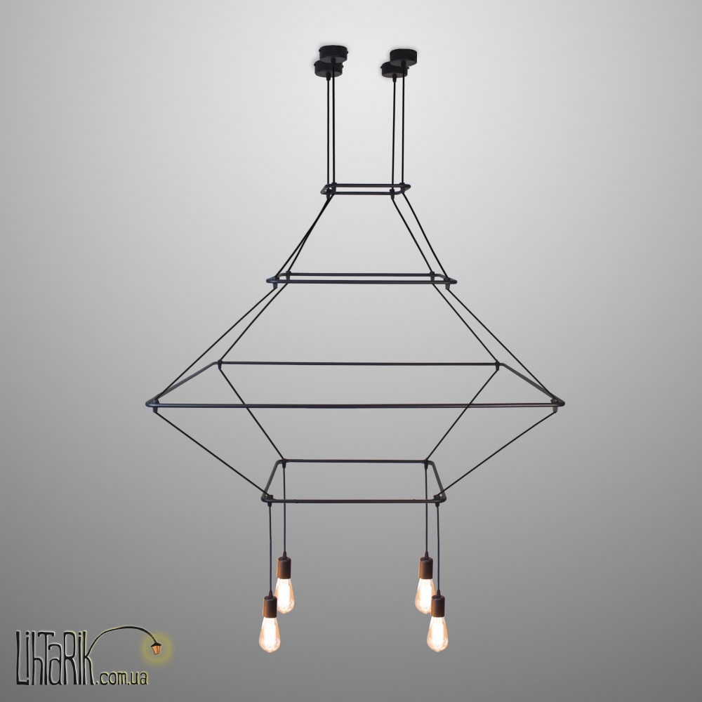Подвесной светильник оригинальной формы, с минималистским каркасным дизайном впишется в любую дизайнерскую среду. Модель представлена в черных тонах. Светильник изготовлен из металла высокого качества