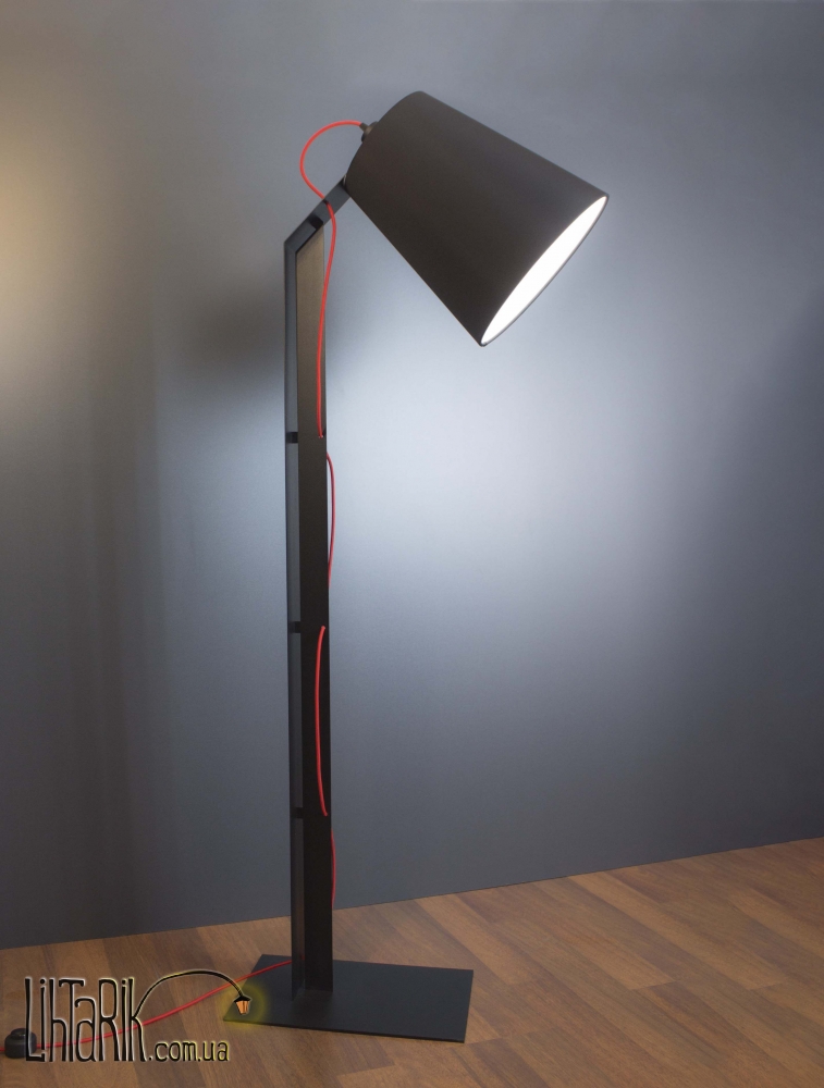 Оригинальный торшер подходит для вашей гостиной, прихожей, спальни. Модель представлена в красных, черных тонах. Светильник изготовлен из металла, ткани высокого качества