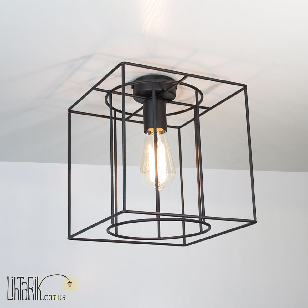 Припотолочная люстра, Светильник на потолок с минималистским каркасным дизайном впишется в любую дизайнерскую среду. Модель представлена в черных тонах. Светильник изготовлен из металла высокого качества