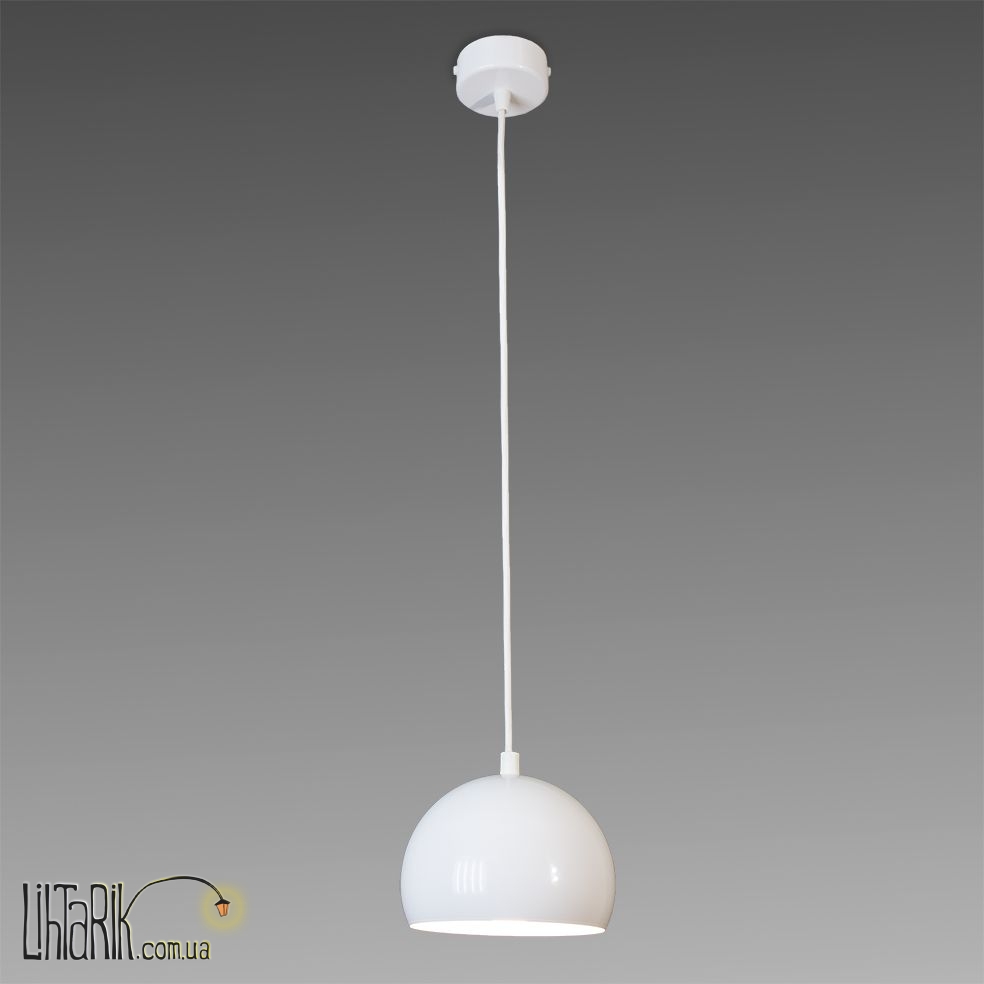 Подвесной светильник, Светильник подвесной в виде зонта или же купола впишется в любую дизайнерскую среду. Подходит для вашей кухни. Модель представлена в белых тонах. Светильник изготовлен из металла высокого качества