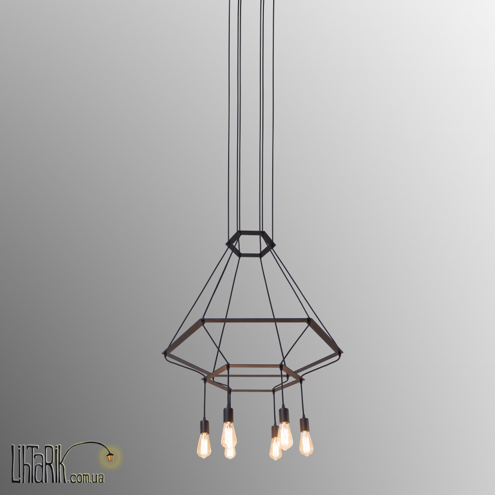 Подвесной светильник оригинальной формы, с минималистским каркасным дизайном впишется в любую дизайнерскую среду. Подходит для вашей кухни. Модель представлена в черных тонах. Светильник изготовлен из металла высокого качества