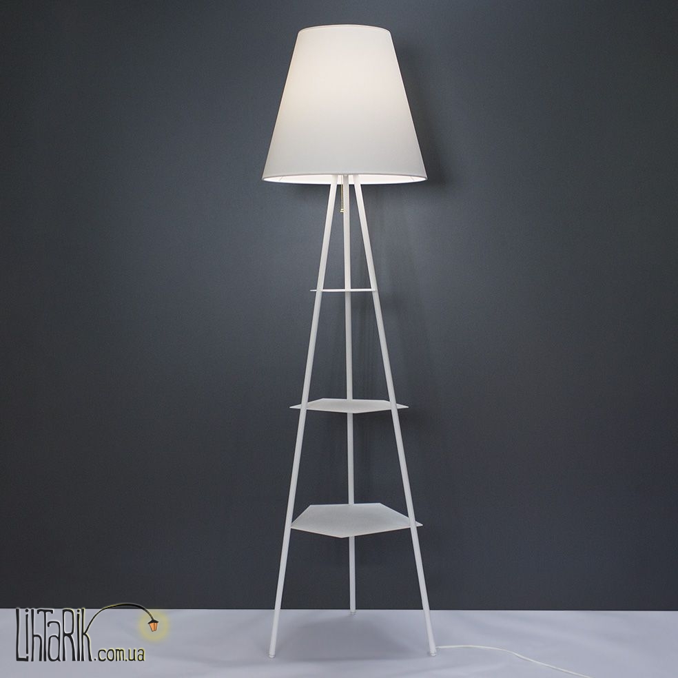Оригинальный торшер с оригинальным абажуром впишется в любую дизайнерскую среду. Подходит для вашей гостиной, прихожей, спальни. Модель представлена в белых тонах. Светильник изготовлен из металла, ткани высокого качества