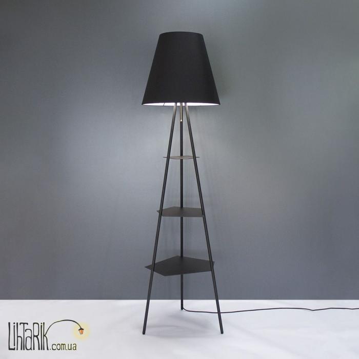 Оригинальный торшер с оригинальным абажуром впишется в любую дизайнерскую среду. Подходит для вашей гостиной, прихожей, спальни. Модель представлена в черных тонах. Светильник изготовлен из металла, ткани высокого качества