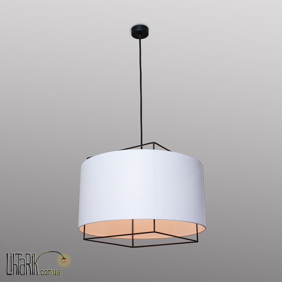 Подвесной светильник с оригинальным абажуром, бочковидного вида впишется в любую дизайнерскую среду. Модель представлена в белых, черных тонах. Светильник изготовлен из металла, ткани высокого качества