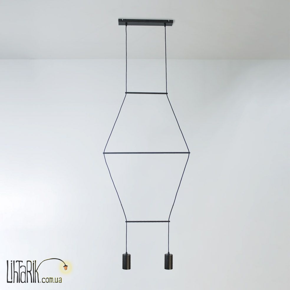 Подвесной светильник, Светильник подвесной оригинальной формы, с минималистским каркасным дизайном впишется в любую дизайнерскую среду. Подходит для вашей кухни. Модель представлена в черных тонах. Светильник изготовлен из металла высокого качества