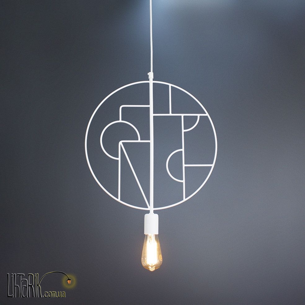 Подвесной светильник, Светильник подвесной оригинальной формы, с минималистским каркасным дизайном впишется в любую дизайнерскую среду. Подходит для вашей кухни. Модель представлена в белых тонах. Светильник изготовлен из металла высокого качества