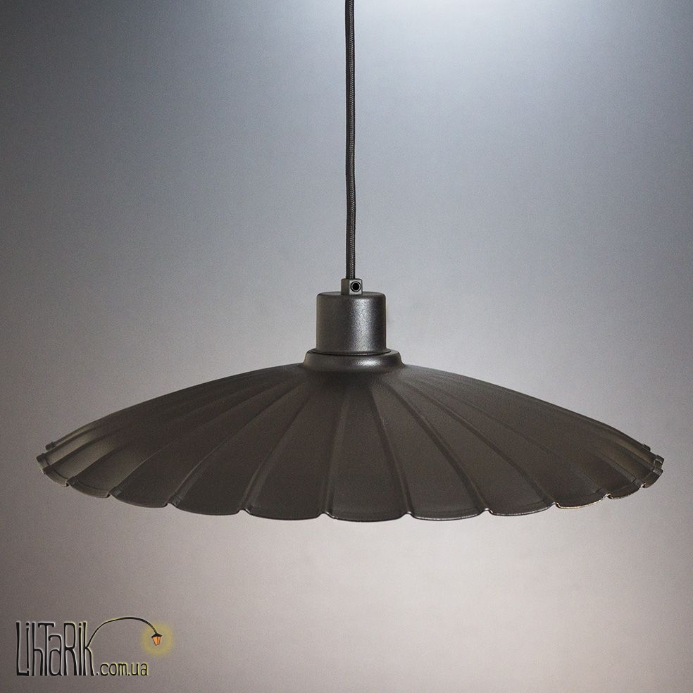 Подвесной светильник, Светильник подвесной как плоская тарелка впишется в любую дизайнерскую среду. Подходит для вашей кухни. Модель представлена в черных тонах. Светильник изготовлен из металла высокого качества