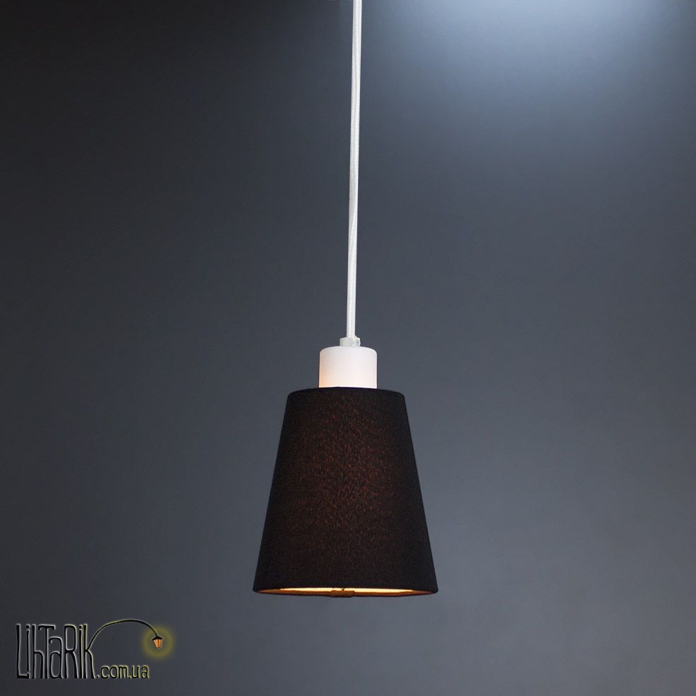 Подвесной светильник с оригинальным абажуром, конусообразной формы впишется в любую дизайнерскую среду. Подходит для вашей кухни. Модель представлена в белых, черных тонах. Светильник изготовлен из металла, ткани высокого качества