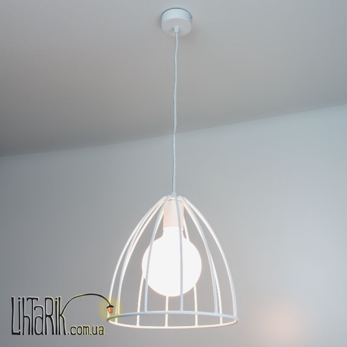 Подвесной светильник с минималистским каркасным дизайном впишется в любую дизайнерскую среду. Подходит для вашей кухни. Модель представлена в белых тонах. Светильник изготовлен из металла высокого качества
