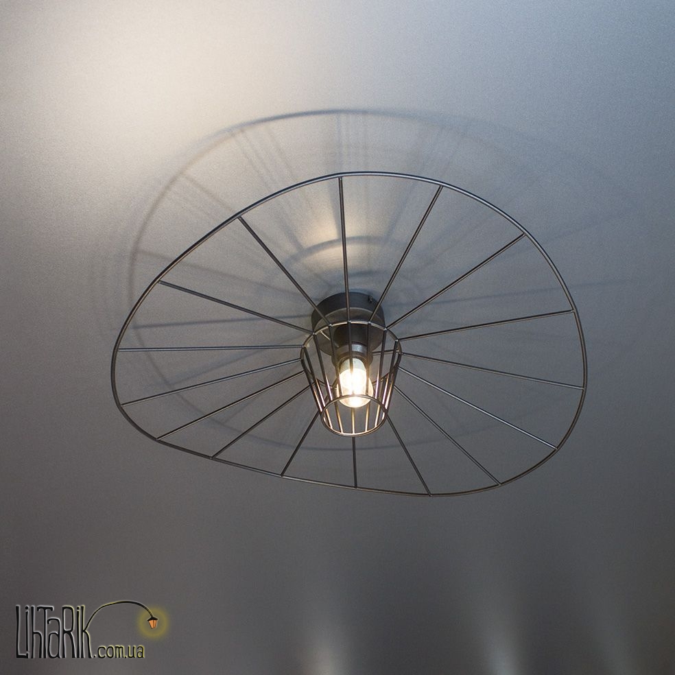 Припотолочная люстра, Светильник на потолок с минималистским каркасным дизайном впишется в любую дизайнерскую среду. Модель представлена в черных тонах. Светильник изготовлен из металла высокого качества