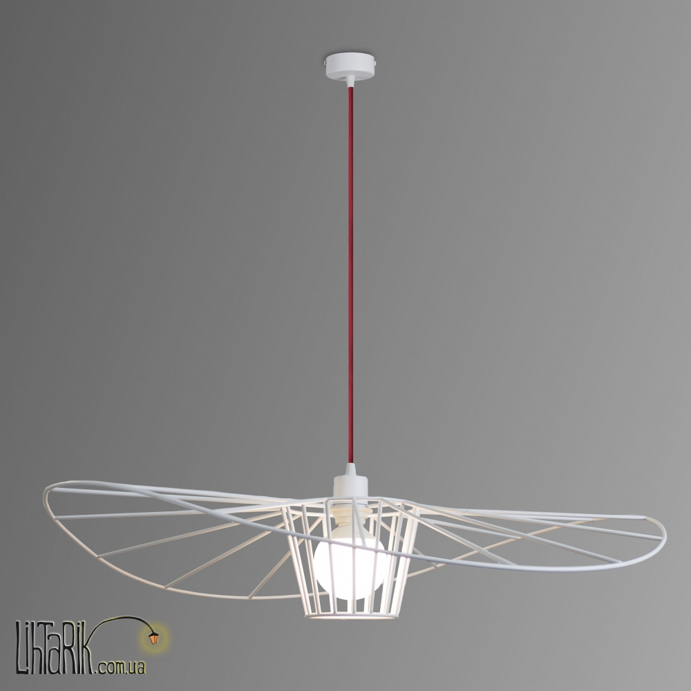 Подвесной светильник, Светильник подвесной с минималистским каркасным дизайном впишется в любую дизайнерскую среду. Подходит для вашей кухни. Модель представлена в белых, красных тонах. Светильник изготовлен из металла высокого качества