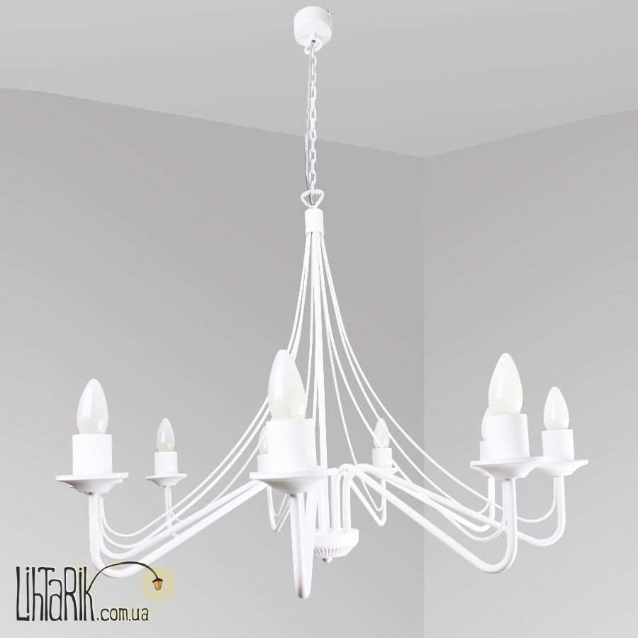 Подвесной светильник с рожковыми элементами дизайна впишется в любую дизайнерскую среду. Подходит для вашей гостиной. Модель представлена в белых тонах. Светильник изготовлен из металла высокого качества