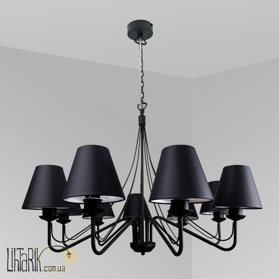 Подвесной светильник с оригинальным абажуром впишется в любую дизайнерскую среду. Подходит для вашей гостиной. Модель представлена в черных тонах. Светильник изготовлен из металла, ткани высокого качества