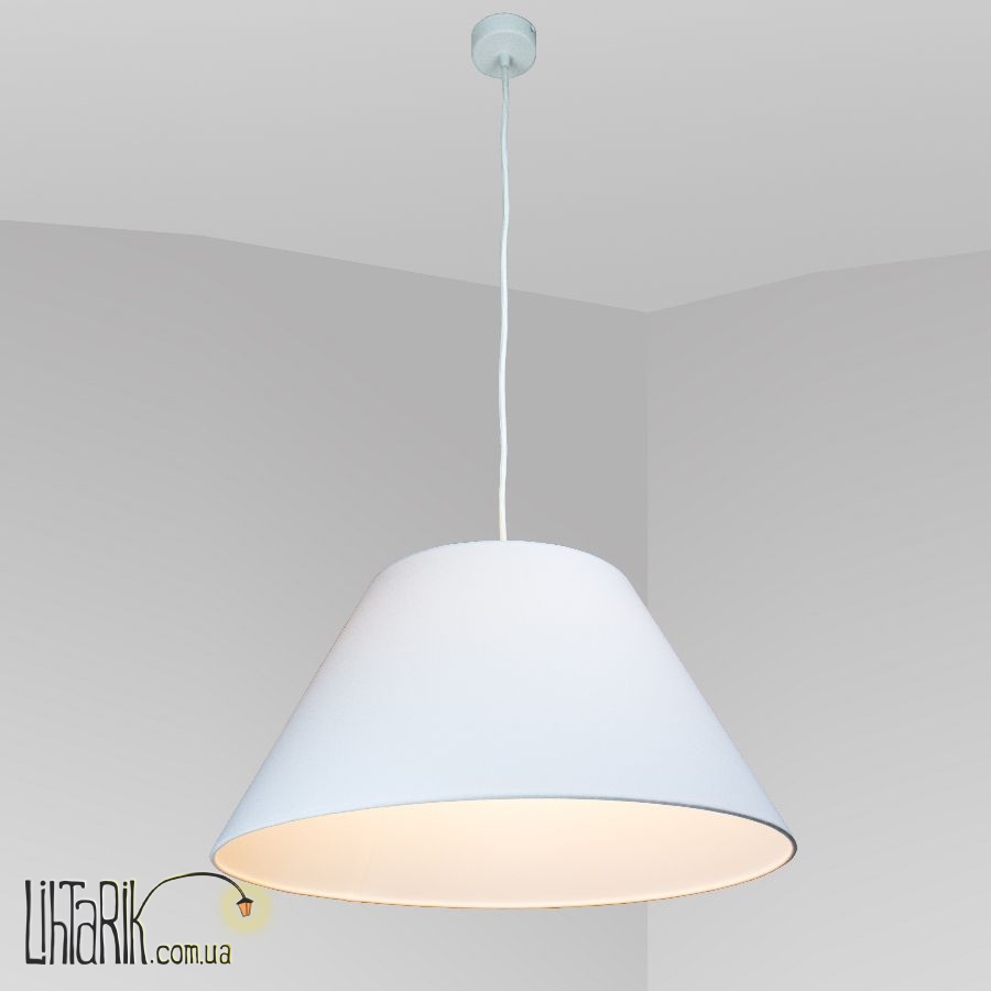 Подвесной светильник с оригинальным абажуром, конусообразной формы впишется в любую дизайнерскую среду. Подходит для вашей кухни. Модель представлена в белых тонах. Светильник изготовлен из металла, ткани высокого качества