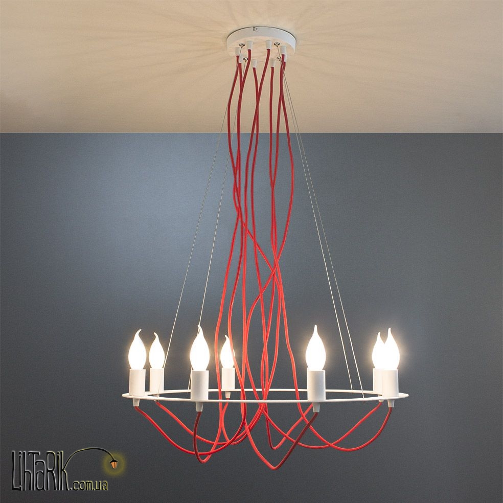 Подвесной светильник с рожковыми элементами дизайна впишется в любую дизайнерскую среду. Модель представлена в белых, красных тонах. Светильник изготовлен из металла высокого качества