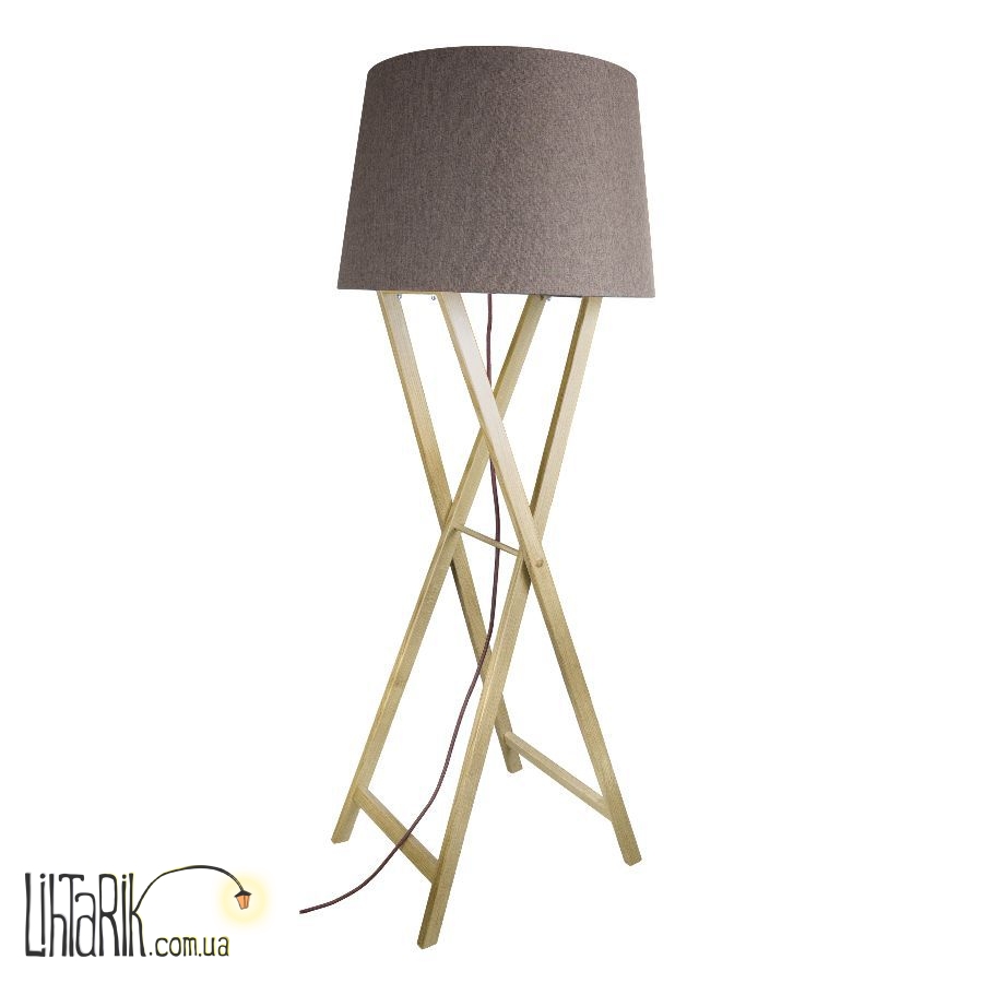 Оригинальный торшер с оригинальным абажуром впишется в любую дизайнерскую среду. Подходит для вашей гостиной, прихожей, спальни. Модель представлена в коричневых тонах. Светильник изготовлен из дерева, ткани высокого качества