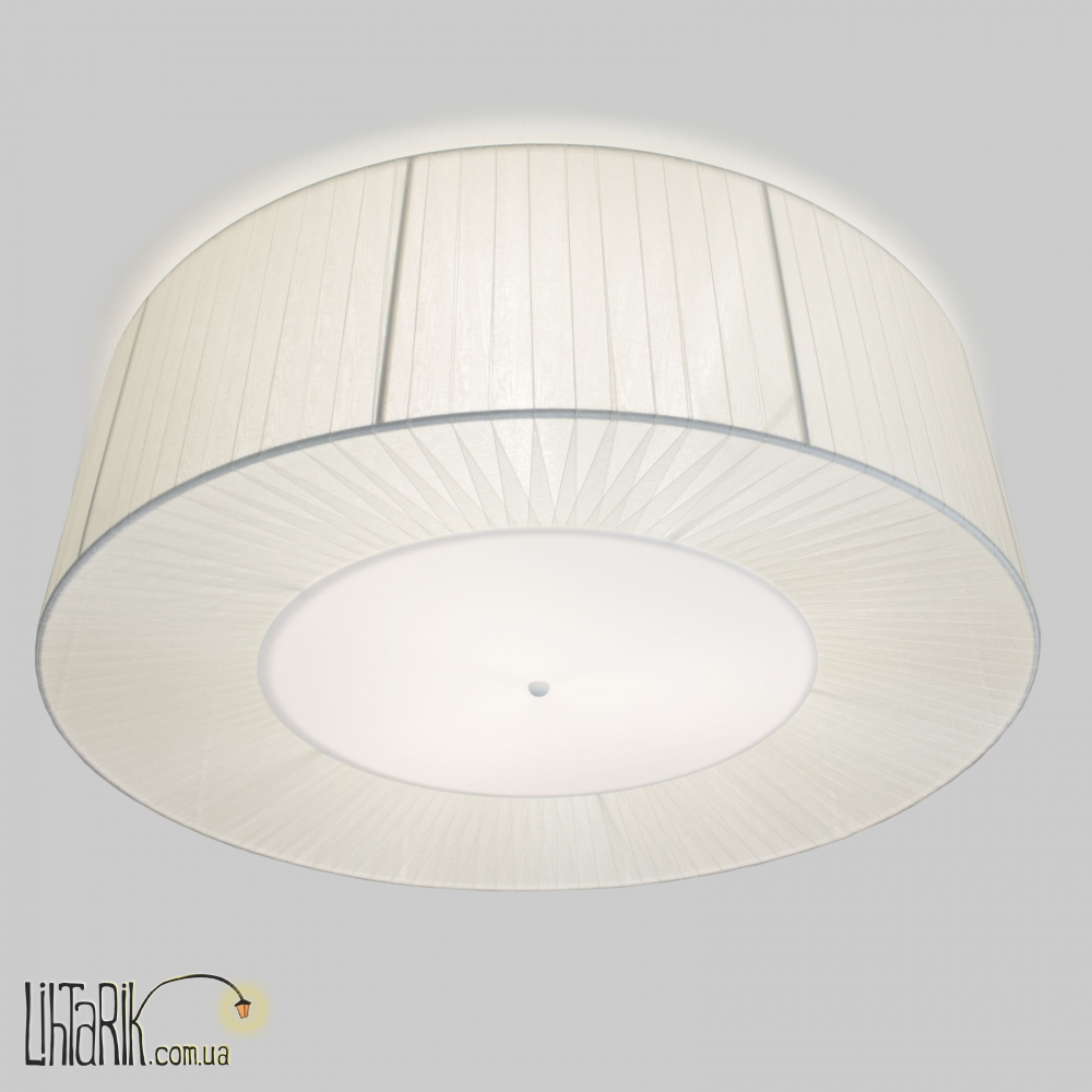 Припотолочная люстра, Светильник на потолок Модель представлена в бежевых, белых тонах. Светильник изготовлен из металла, ткани высокого качества