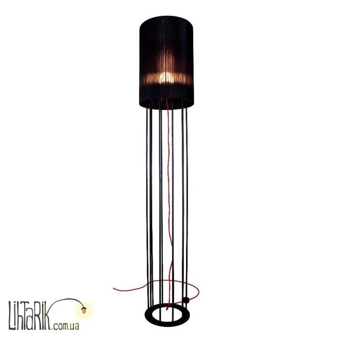 Оригинальный торшер бочковидного вида, колбовидной формы впишется в любую дизайнерскую среду. Подходит для вашей гостиной, прихожей, спальни. Модель представлена в черных тонах. Светильник изготовлен из металла, ткани высокого качества