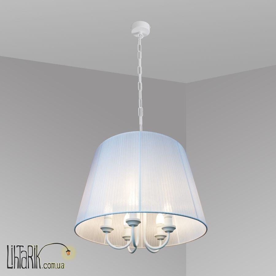 Подвесной светильник с оригинальным абажуром впишется в любую дизайнерскую среду. Модель представлена в белых тонах. Светильник изготовлен из металла, ткани высокого качества