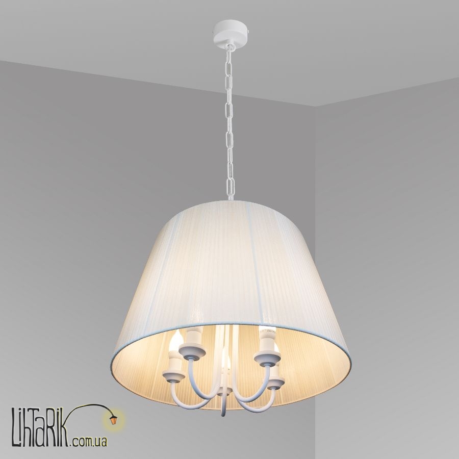 Подвесной светильник с оригинальным абажуром впишется в любую дизайнерскую среду. Модель представлена в бежевых, белых тонах. Светильник изготовлен из металла, ткани высокого качества