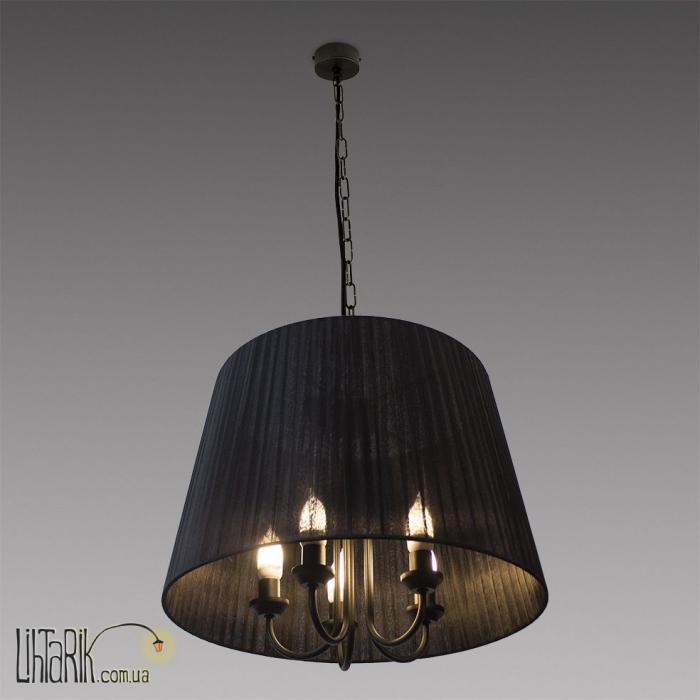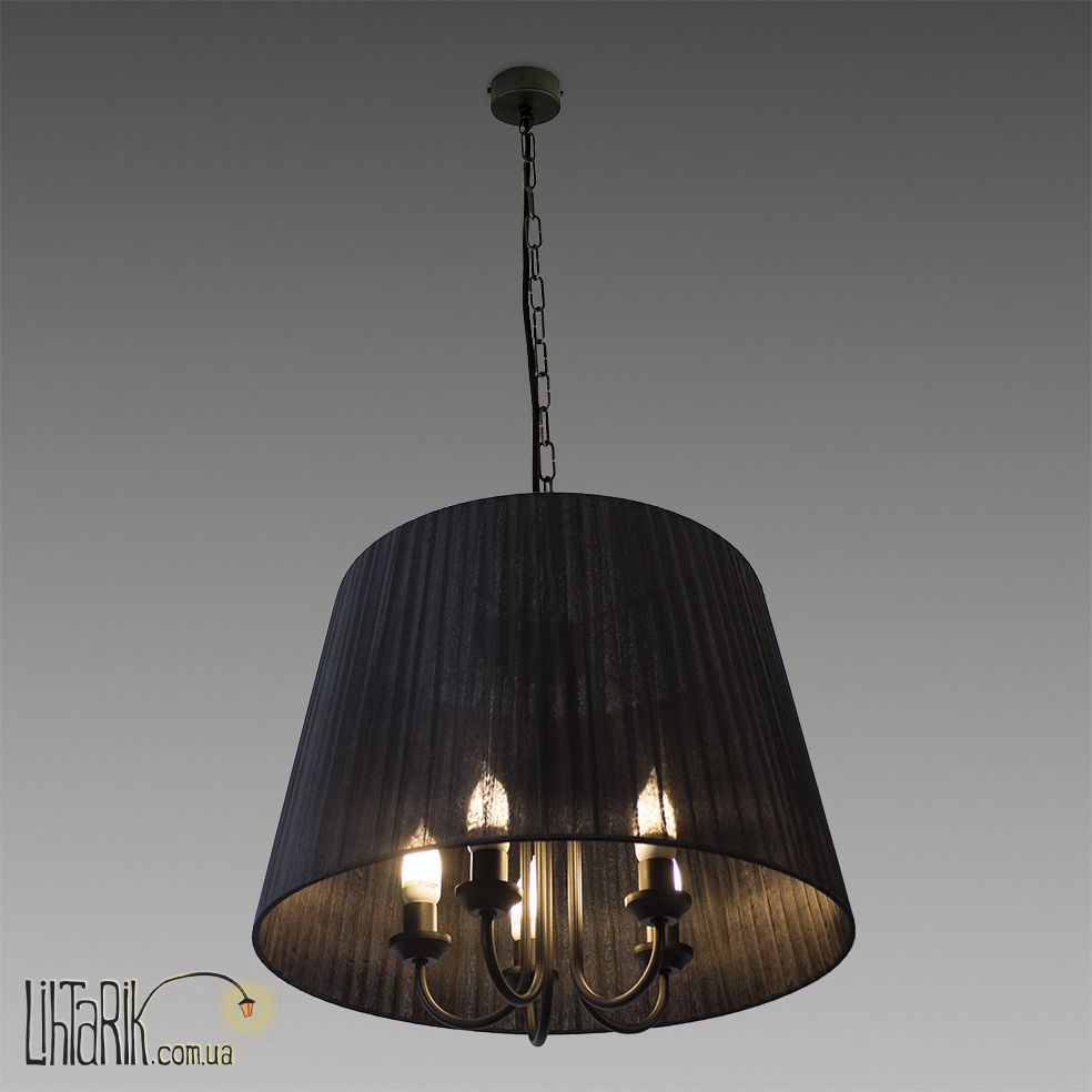 Подвесной светильник с оригинальным абажуром, с рожковыми элементами дизайна впишется в любую дизайнерскую среду. Модель представлена в черных тонах. Светильник изготовлен из металла, ткани высокого качества