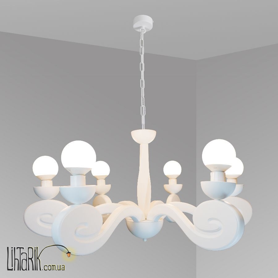 Подвесной светильник с рожковыми элементами дизайна впишется в любую дизайнерскую среду. Подходит для вашей гостиной. Модель представлена в белых тонах. Светильник изготовлен из дерева высокого качества