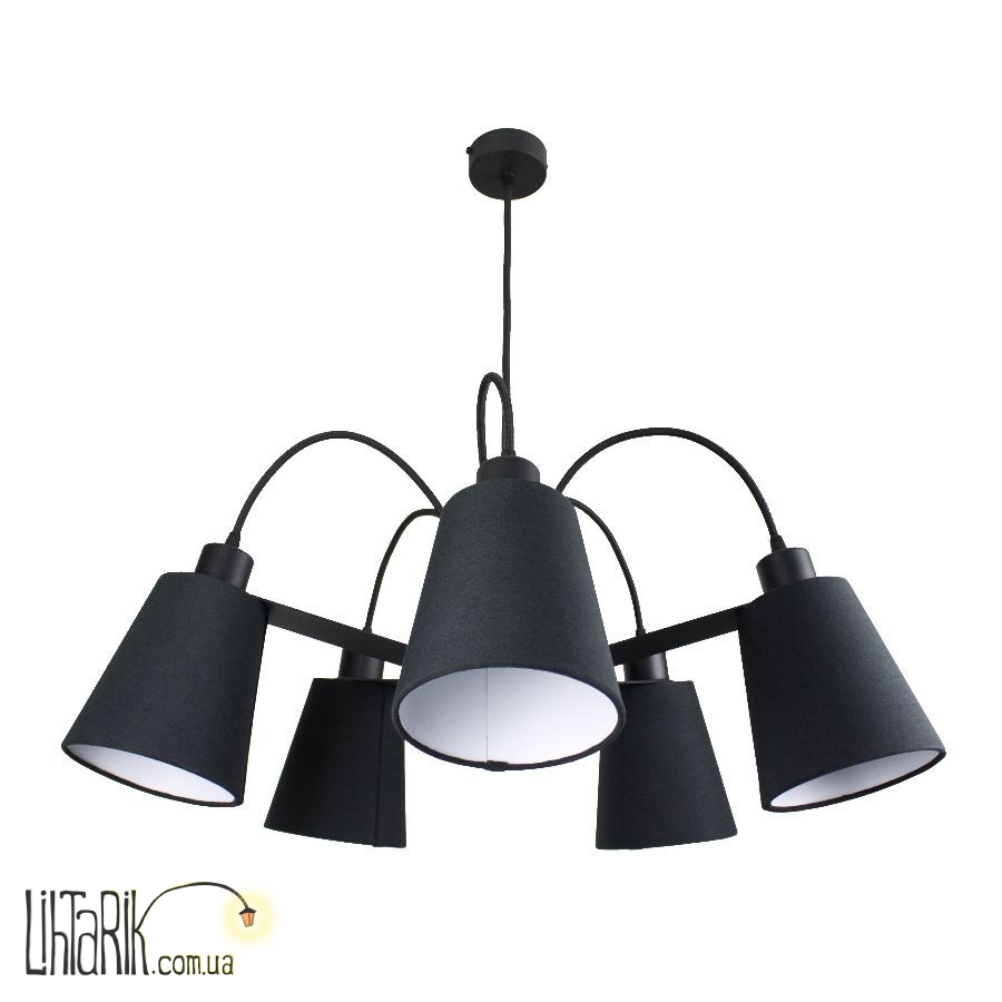 Подвесной светильник с оригинальным абажуром впишется в любую дизайнерскую среду. Подходит для вашей гостиной. Модель представлена в черных тонах. Светильник изготовлен из металла, ткани высокого качества
