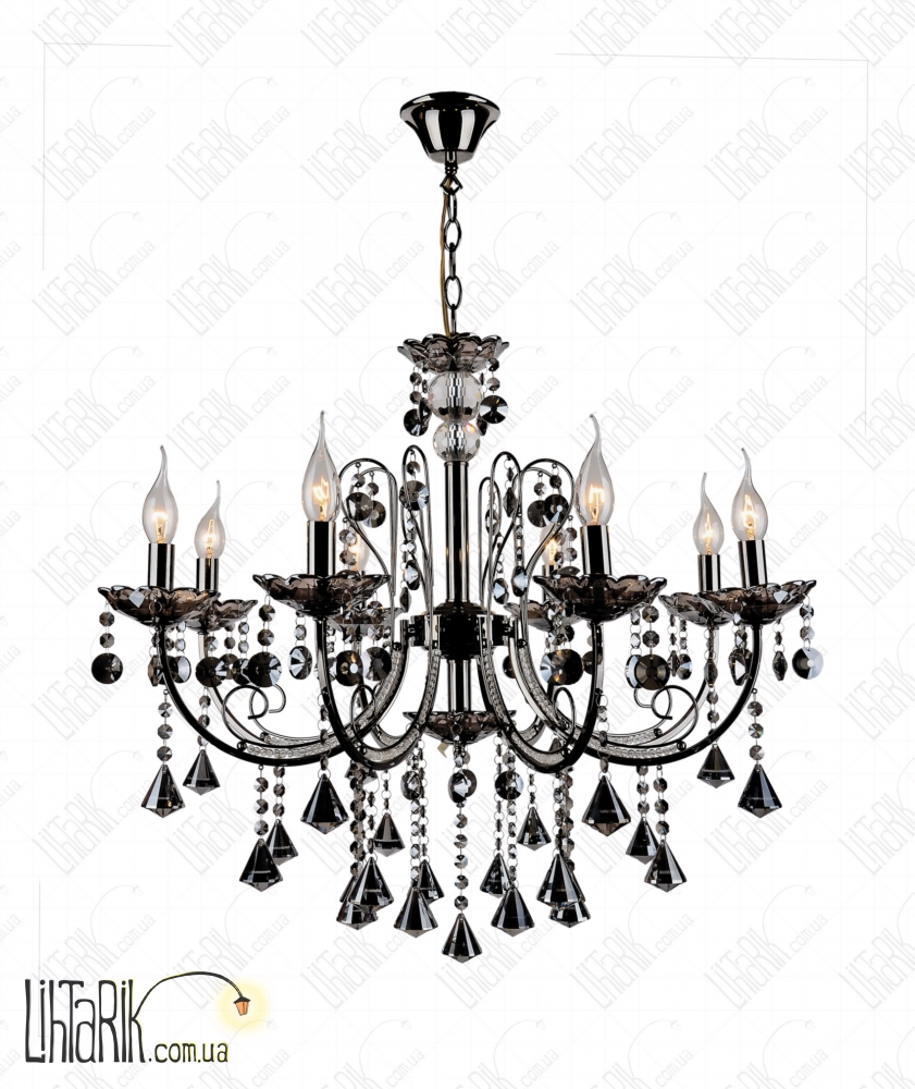 Подвесной светильник с рожковыми элементами дизайна, в виде свечей, с хрустальными подвесами впишется в любую дизайнерскую среду. Подходит для вашей гостиной, спальни. Светильник изготовлен из металла, стекла, хрусталя высокого качества