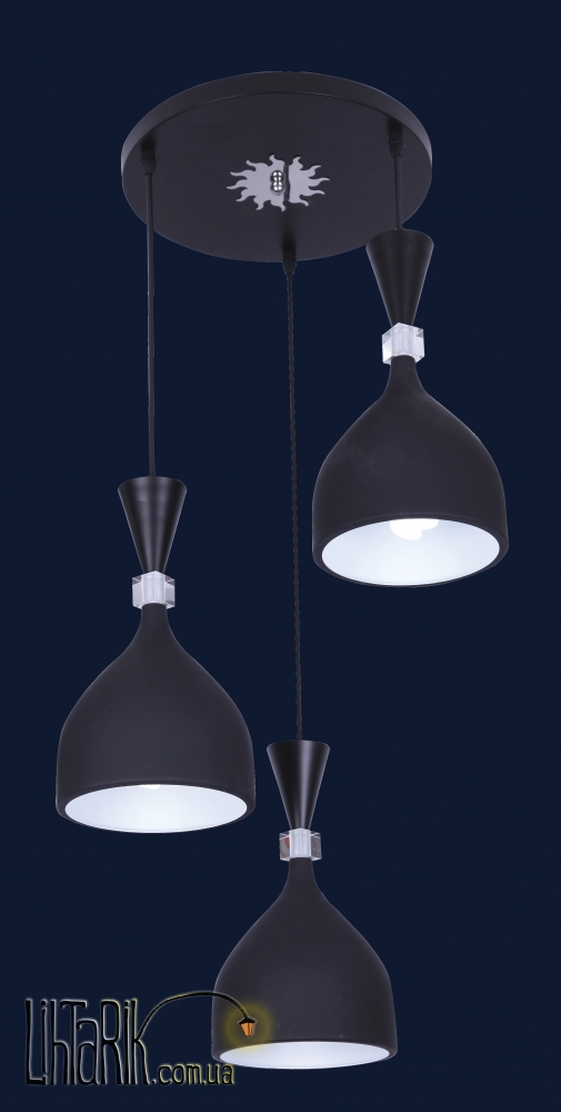 Подвесной светильник, Светильник подвесной колбовидной формы, в виде зонта или же купола впишется в любую дизайнерскую среду. Подходит для вашей кухни. Модель представлена в черных тонах.