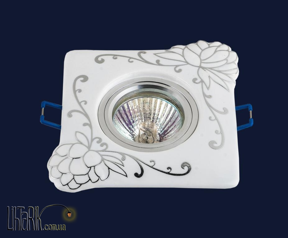 Встраиваемый светильник с четкими ровными углами впишется в любую дизайнерскую среду. Модель представлена в белых тонах. Светильник изготовлен из гипса, пластика высокого качества