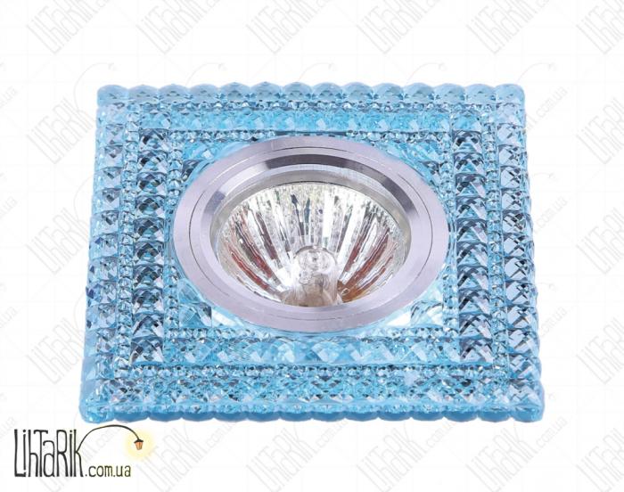 Встраиваемый светильник с четкими ровными углами впишется в любую дизайнерскую среду. Модель представлена в синих тонах. Светильник изготовлен из гипса, пластика высокого качества