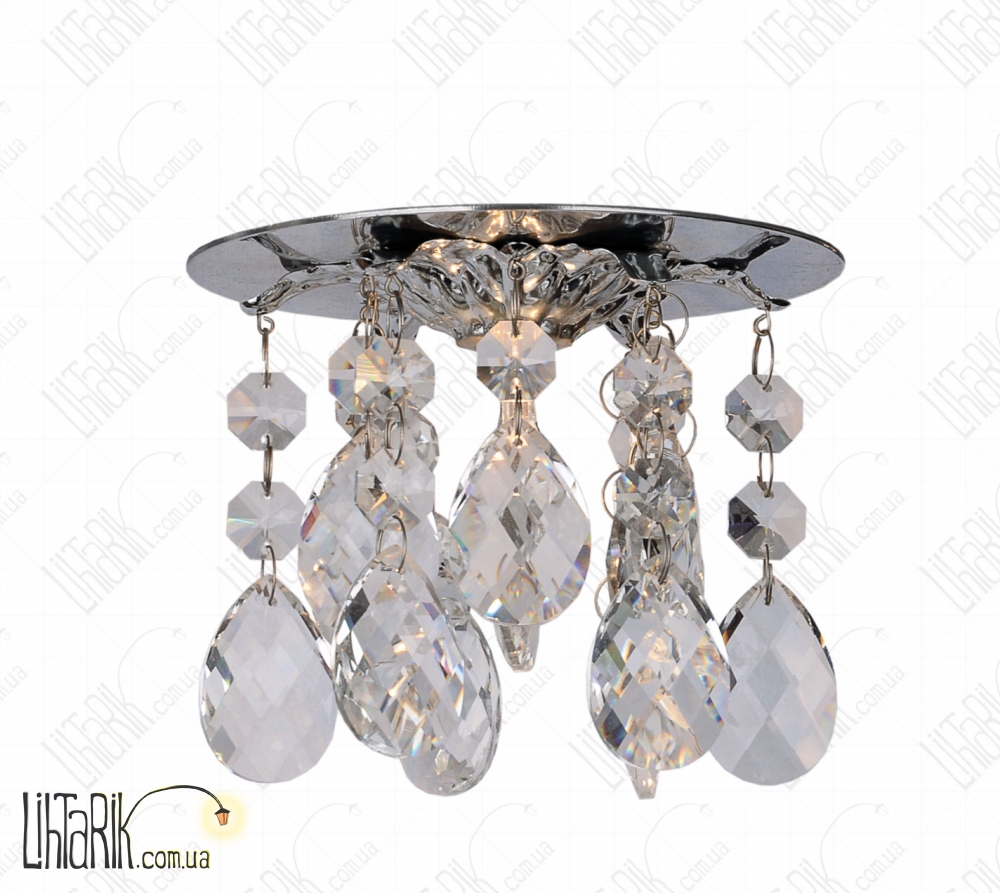 Встраиваемый светильник круглого (шарообразного) вида, с хрустальными подвесами впишется в любую дизайнерскую среду. Модель представлена в белых, прозрачных тонах. Светильник изготовлен из металла, стекла, хрусталя высокого качества