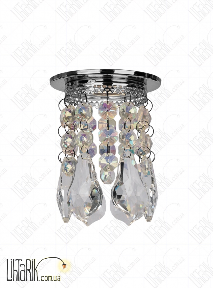 Встраиваемый светильник круглого (шарообразного) вида, с хрустальными подвесами впишется в любую дизайнерскую среду. Модель представлена в белых, прозрачных тонах. Светильник изготовлен из металла, стекла, хрусталя высокого качества