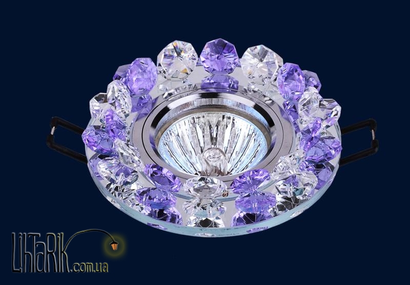 Встраиваемый светильник круглого (шарообразного) вида, с хрустальными подвесами впишется в любую дизайнерскую среду. Модель представлена в фиолетовых тонах.