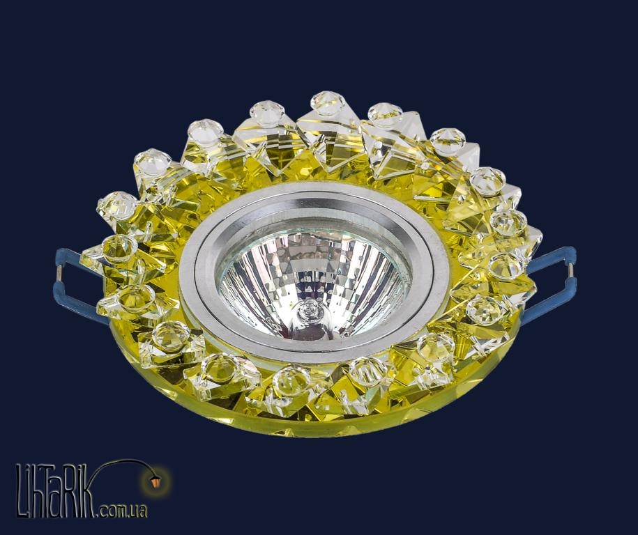 Встраиваемый светильник круглого (шарообразного) вида, с хрустальными подвесами впишется в любую дизайнерскую среду. Модель представлена в зеленых тонах.