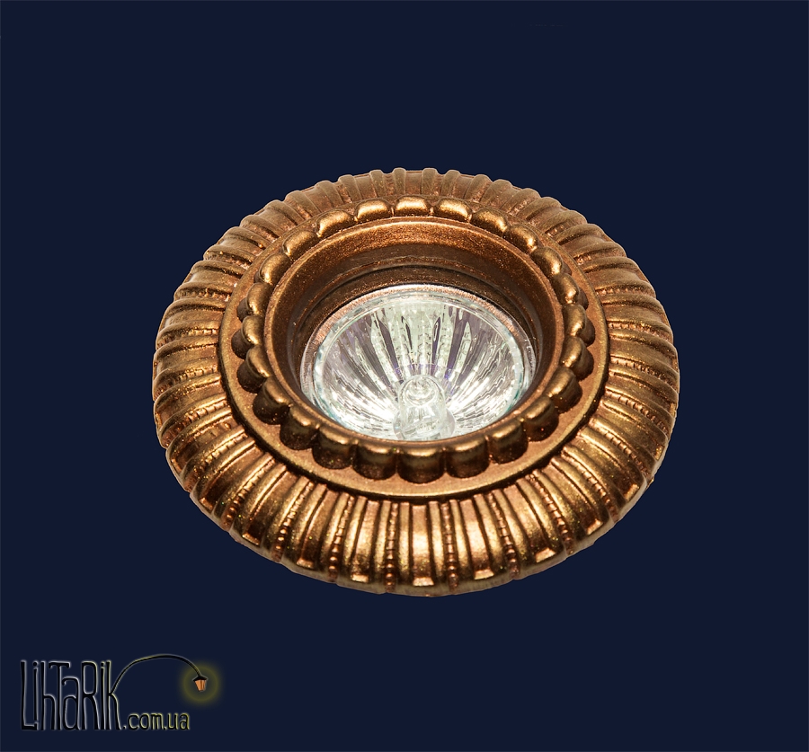 Встраиваемый светильник круглого (шарообразного) вида впишется в любую дизайнерскую среду. Модель представлена в золотых тонах.