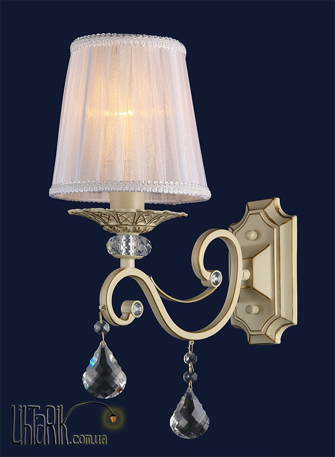Классическое бра с текстильным абажуром прекрасно дополнит и украсит интерьер Вашей спальни, гостинной. Цвет основания-слоновая кость с золотым обрамлением, возожен вариант-античная бронза. Цоколь Е14 позволяет использовать в качестве источника света обычную лампу накаливания, экономку или диодную лампу, все зависит от желаемого результата.
