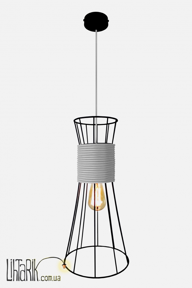 Подвесной светильник оригинальной формы, с минималистским каркасным дизайном впишется в любую дизайнерскую среду. Подходит для вашей кухни. Модель представлена в серых тонах. Светильник изготовлен из металла, ткани высокого качества