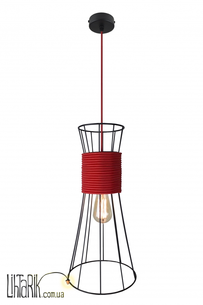 Подвесной светильник оригинальной формы, с минималистским каркасным дизайном впишется в любую дизайнерскую среду. Подходит для вашей кухни. Модель представлена в красных, черных тонах. Светильник изготовлен из металла, ткани высокого качества