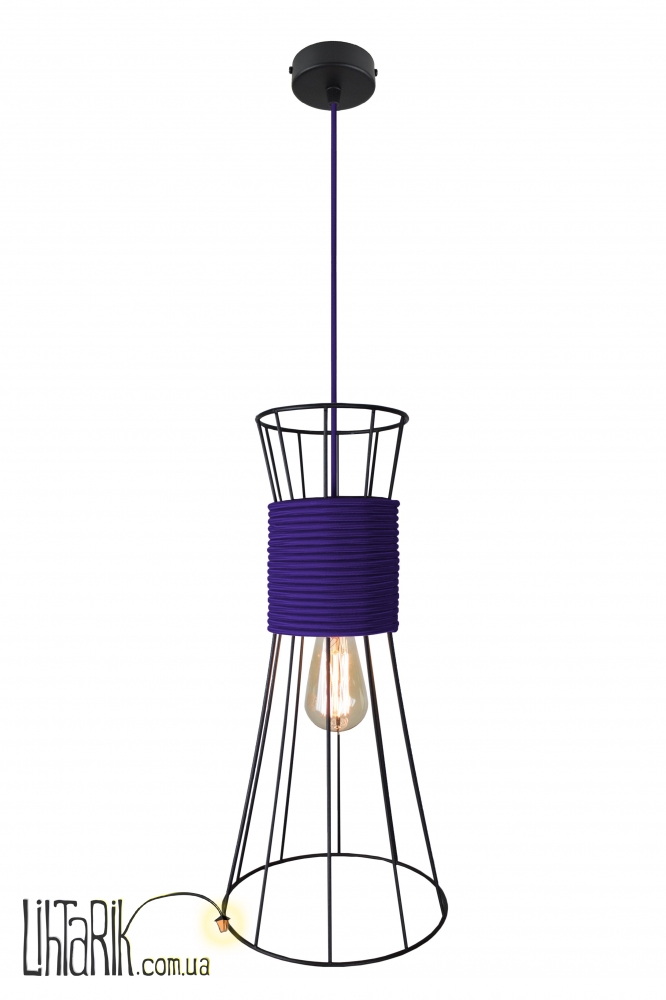 Подвесной светильник оригинальной формы, с минималистским каркасным дизайном впишется в любую дизайнерскую среду. Подходит для вашей кухни. Модель представлена в фиолетовых, черных тонах. Светильник изготовлен из металла, ткани высокого качества