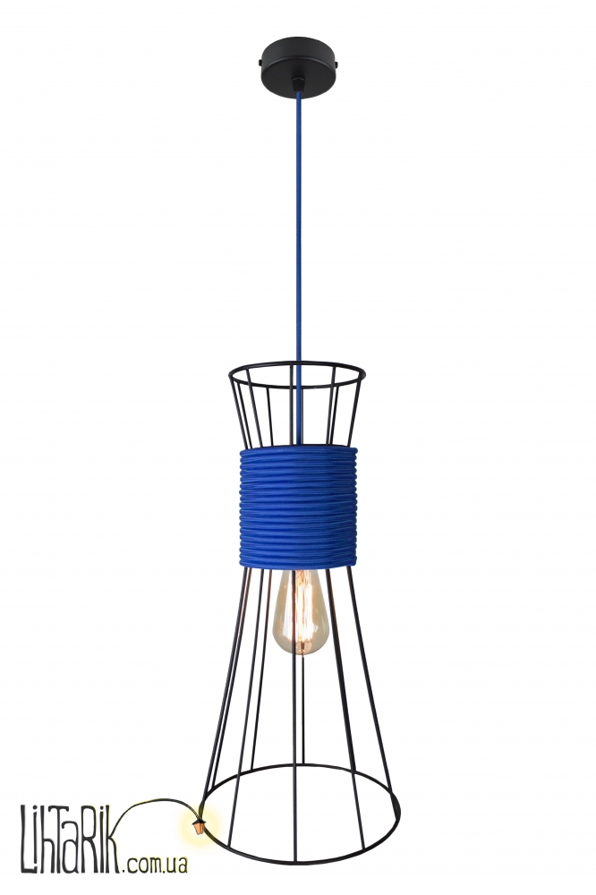 Подвесной светильник оригинальной формы, с минималистским каркасным дизайном впишется в любую дизайнерскую среду. Подходит для вашей кухни. Модель представлена в синих тонах. Светильник изготовлен из металла, ткани высокого качества