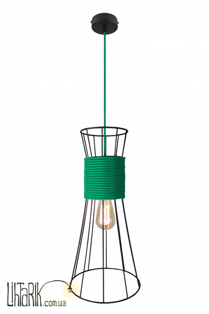 Подвесной светильник оригинальной формы, с минималистским каркасным дизайном впишется в любую дизайнерскую среду. Подходит для вашей кухни. Модель представлена в зеленых, черных тонах. Светильник изготовлен из металла, ткани высокого качества