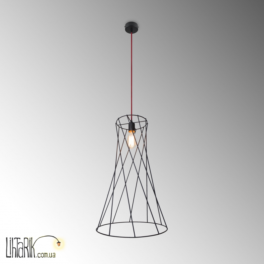 Подвесной светильник оригинальной формы, с минималистским каркасным дизайном впишется в любую дизайнерскую среду. Подходит для вашей кухни. Модель представлена в красных, черных тонах. Светильник изготовлен из металла высокого качества