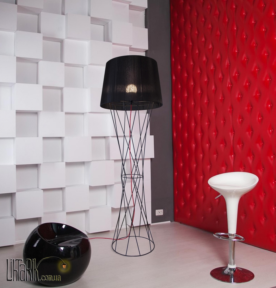Оригинальный торшер с оригинальным абажуром впишется в любую дизайнерскую среду. Подходит для вашей гостиной, прихожей, спальни. Модель представлена в красных, черных тонах. Светильник изготовлен из металла, ткани высокого качества